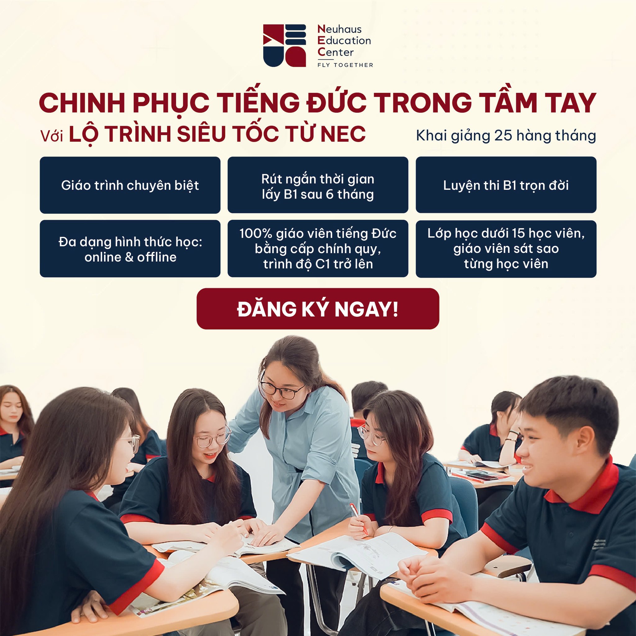 Nếu bạn cần hỗ trợ lộ trình học tiếng Đức hiệu quả, NEC sẵn sàng đồng hành cùng bạn. Liên hệ NEC ngay để được tư vấn chi tiết!