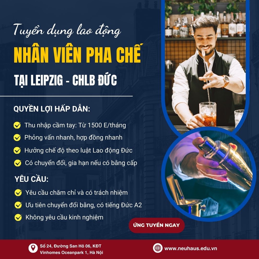 Pha chế – Leipzig (01 slot duy nhất): Đây là vị trí đặc biệt, ưu tiên ứng viên đã có chuyển đổi văn bằng và đạt trình độ tiếng Đức A2. Lương thực nhận tương đương với các đơn bếp nóng và sushi. Với đặc thù ngành pha chế, cơ hội giao tiếp và nâng cao ngoại ngữ cũng rất rộng mở.