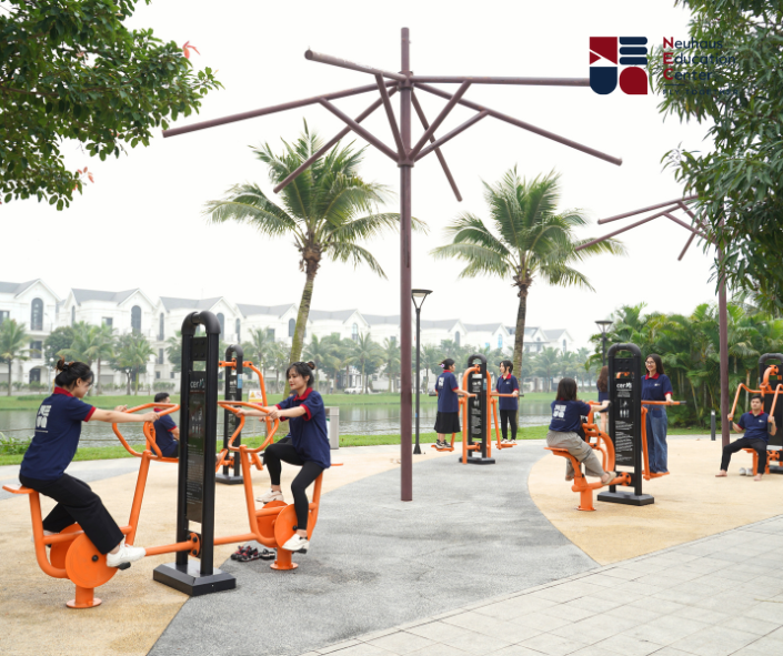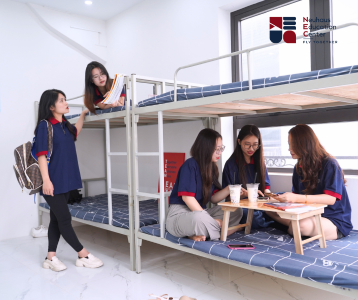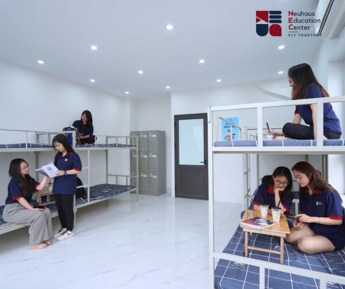 Nằm trong quần thể Khu đô thị Vinhomes Oceanpark 1, Ký túc xá của NEC là hệ thống các biệt thự với mô hình tầng 1 là lớp học, các tầng trên là chỗ ăn nghỉ, nhằm đảm bảo thuận tiện nhất cho việc học của các bạn học viên. Bên cạnh đó, NEC cũng được trọn vẹn các tiện ích của Vinhomes như Bãi biển nhân tạo, các khu thể dục, thể thao, bể bơi ngoài trời,...