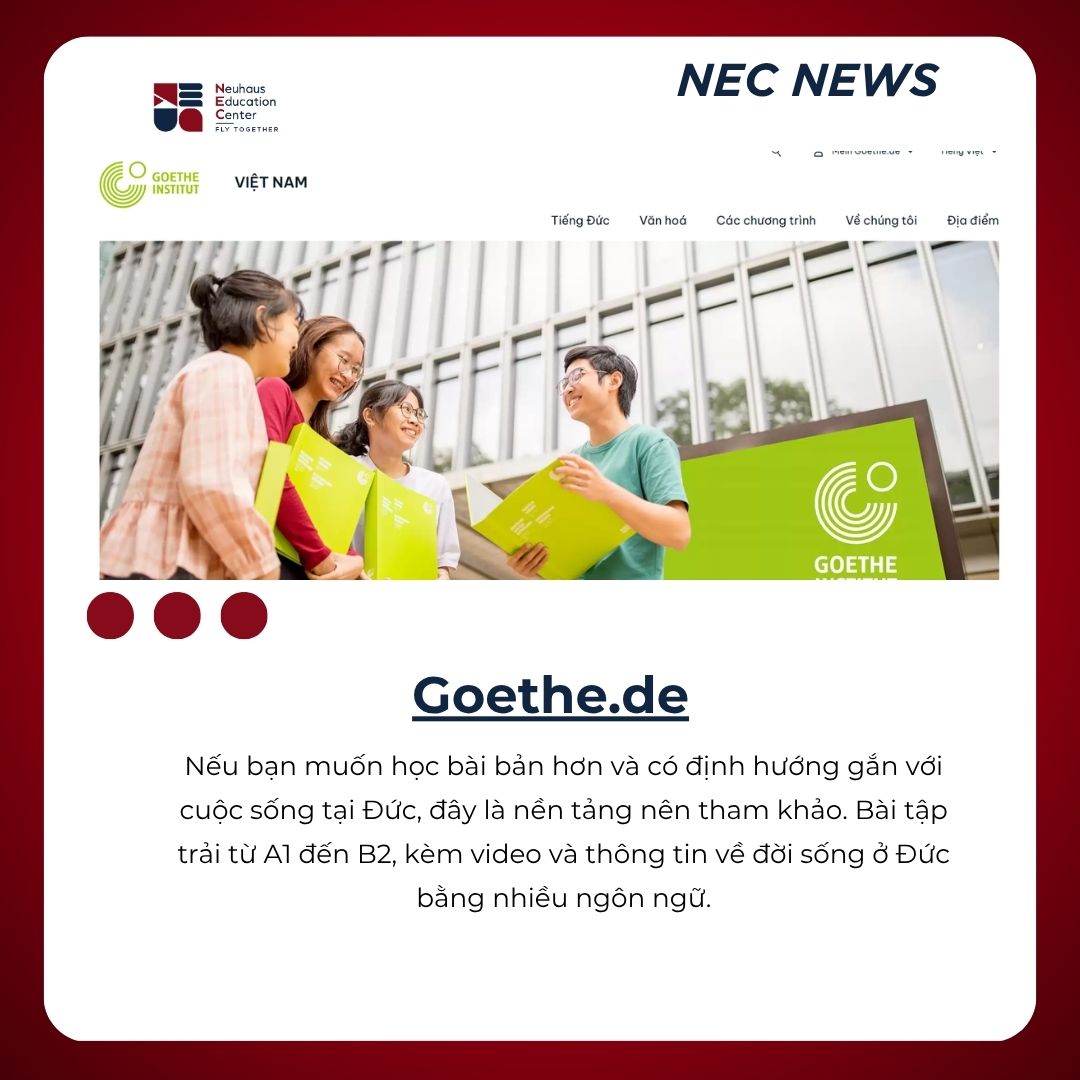 Nếu bạn muốn học tiếng Đức từ một nguồn uy tín, có định hướng gần với chuẩn học thuật và kỳ thi, Goethe là lựa chọn rất đáng ưu tiên. Bài tổng hợp gốc giới thiệu đây là website cho phép người học chọn nội dung theo trình độ và chủ đề, có bài tập từ A1 đến B2 cùng thông tin về cuộc sống ở Đức. Trên các trang chính thức của Goethe-Institut, hiện vẫn có hệ thống luyện tiếng Đức miễn phí cho nhiều cấp độ, từ A1 đến C2, bao gồm bài tập theo chủ đề đời sống, công việc và cả tài liệu ôn thi chứng chỉ.