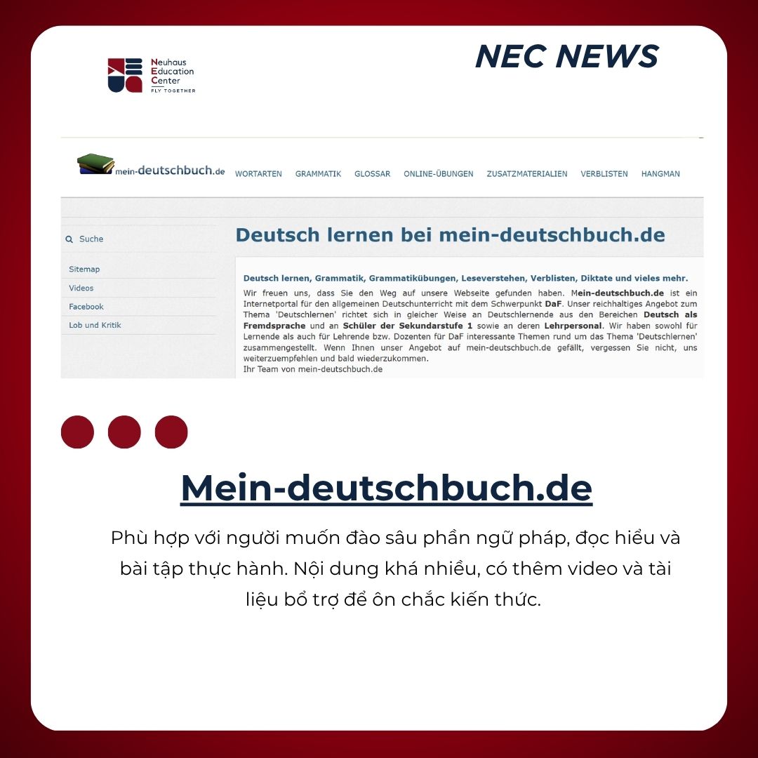 Nếu bạn là kiểu người thích học chắc ngữ pháp, thích đọc kỹ cấu trúc câu và làm bài tập để hiểu sâu, mein-deutschbuch là cái tên nên tham khảo. Trong danh sách gốc, nền tảng này được mô tả là một cổng học tiếng Đức tổng quát, tập trung vào các bài học nền tảng và hỗ trợ học tại nhà một cách tiết kiệm. Đây là lựa chọn hợp với những bạn học theo hướng chậm mà chắc, đặc biệt ở giai đoạn cần củng cố căn bản.